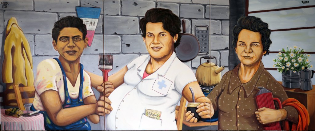 Dicen que Cacho era jodón, que era amistoso y laburante. Que dejaba su tabaco sobre la mesa y a la vista porque aquello era casi una declaración política, de militancia, de compañero…Aida fue costurera y hasta alcanzó a tener su propio taller, poniendo puntadas e hilo incluso a aquellos que no pudieran pagarlo porque sabía que todos tenemos merecemos lucir una pilcha linda. Aunque le costara bastante por el embarazo, Aida nunca dejó de laburar como enfermera, allá en Buenos Aires. Su madre, Elsa. No estaba convencida de viajar. pero lo que la convenció de tomarse el barco fue el amor, para poder acompañar el último tirón del embarazo y los primeros instantes de la nieta por nacer. A Elsa, Aida y su hija por nacer las desaparecieron el 23 de diciembre, a Cacho 3 o 4 días después. Cacho tuvo tiempo de correr a avisar, quizás podía salvar algún compañero. Esta obra es la representación de un momento que no existió, de la nochebuena que no pudieron tener los 4. La vida de su hija, nieta recuperada en Buenos Aires es un muestra de la voluntad de Memoria y Justicia, que llegarán.