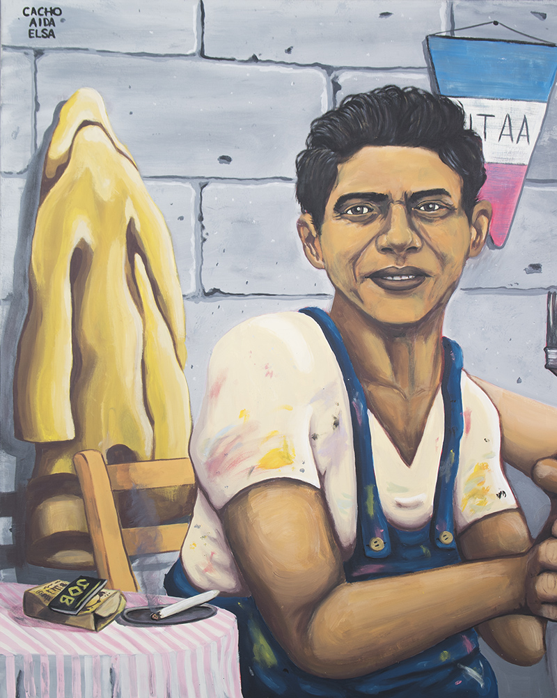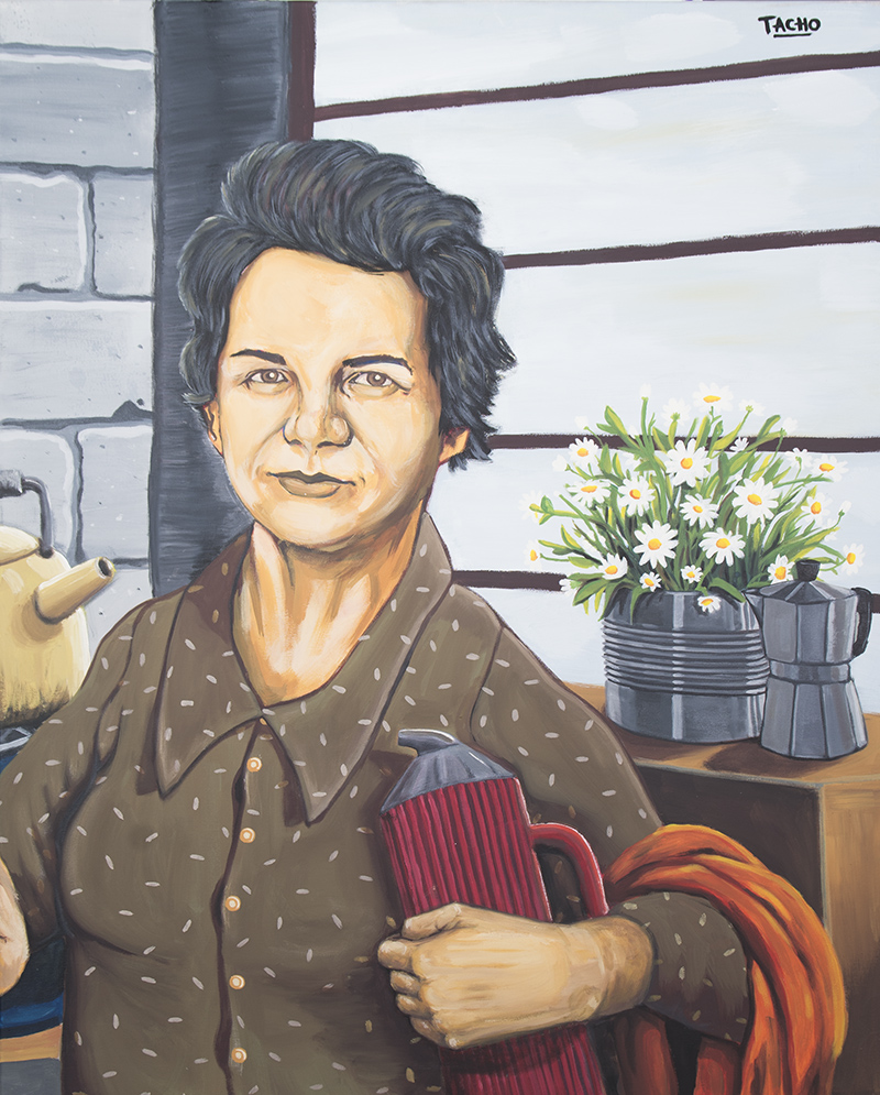 Tacho: Uruguayo y canario, pero nacido en Montevideo en 1987. Profesor de Historia en educación media, trabaja en liceos de Montevideo y Canelones. Hincha de Peñarol y del fútbol, se crió en el campo junto sus 4 hermanos. Desde hace varios años se desempeña como artista visual, complementando así la tarea como docente. Desde el comienzo su principal medio de expresión ha sido pintar en camisetas con personajes fantásticos, delirantes y coloridos que se transforman en obras móviles, llevando sus colores por ahí. Pinta, dibuja e ilustra todo lo que pueda, incluso las paredes, y por esto ha participado en encuentros de muralismo a nivel nacional en Montevideo, Dolores y Young. Además de estas sitios, algunas de sus paredes se pueden encontrar en Punta Negra, La Pedrera, Punta del Diablo y Valizas. Utilizando las redes sociales busca también dar en su arte espacios visibilidad a cuestiones que se vinculan con problemáticas sociales y políticas que sea bueno destacar. Actualmente experimenta en el formato digital y sobre todo, usa el dibujo para darle vida a sus clases de Historia.