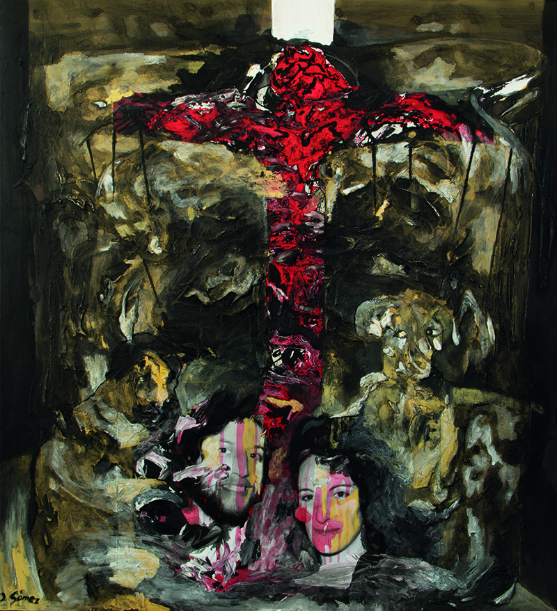 Durante el proceso creativo he ido variando los puntos de vista, donde la idea inicial fue transformándose, hasta llegar a la última versión, donde trato de interpretar plásticamente, las fuerzas que impulsaron a cometer tales atrocidades. Y darle forma en una imágen, a esa situación de ser parte de una cuestión mucho mayor que sucedía, por eso el título de «Marionetas» y contrastarlo con la pureza de la foto inspiradora.