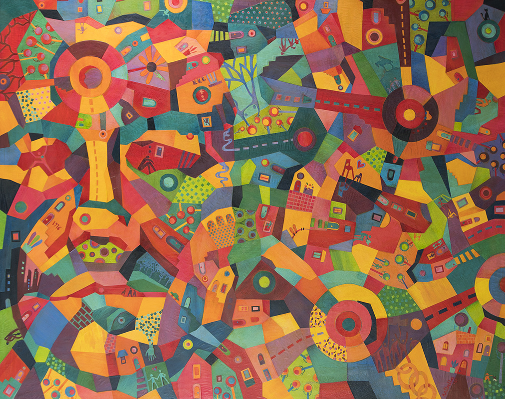 Collage con papeles pintados con acrílico y lápiz de color. 100 x 80 (2020)