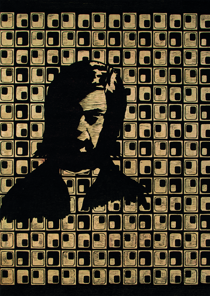 Técnica: Xilografía Materiales: madera y tinta al aceite negra. 80 x 100 (2020)