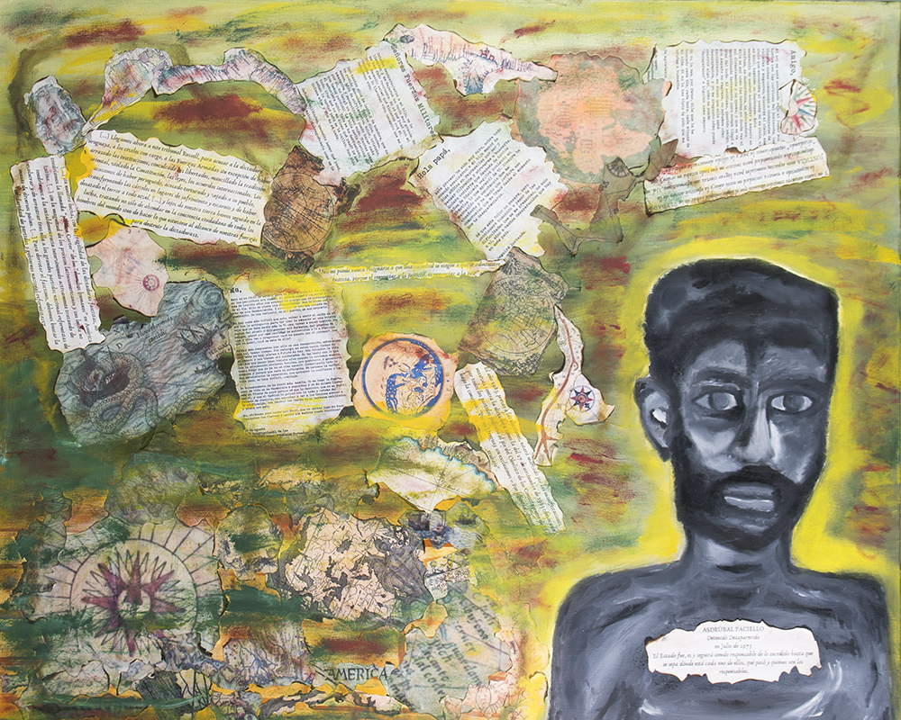 Autor: Vital Menéndez Artista uruguayo nace en 1987 (Tacuarembó) Nombre de la obra: Asdrúbal Paciello Collage realizado con un Técnica mixta. Acrílicos y collage sobre lienzo. 100 x 80 (2021) Nota de Autor El mar y una lancha su salvación. El agua y un camino guiado por cartas marinas como esperanza de vida. Una vidaSigue leyendo «Paciello Martínez, Asdrúbal (25 años)»